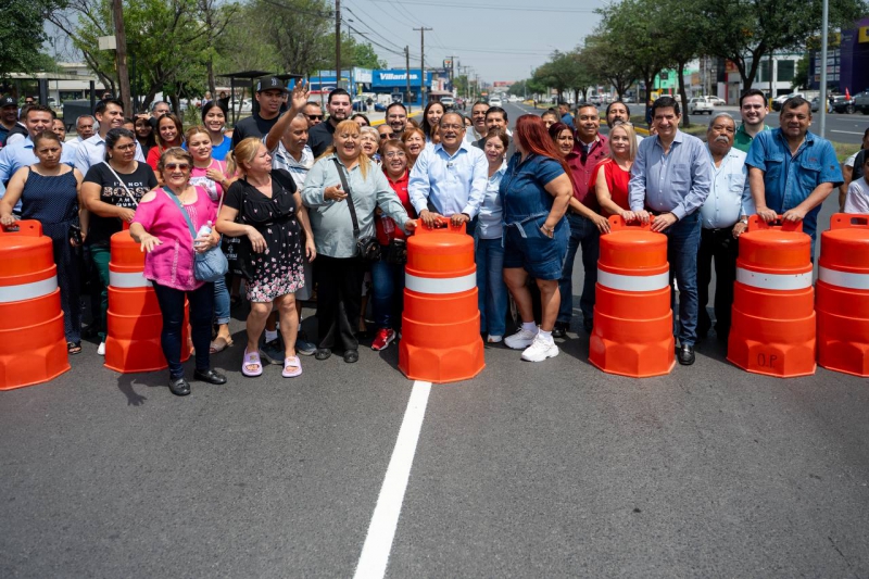 El Alcalde Andrés Mijes encabezó este viernes la entrega de la primera etapa de modernización de la Avenida Raúl Salinas, una de las vialidades más importantes del norte del área metropolitana, donde circulan diariamente más de 150 mil automovilistas.